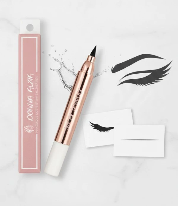 שבלונה מובנית בקצה העט שיוצרת את ה"שפיץ" (הכנף) בזווית מושלמת. פשוט להניח, להחתים, ולקבל סימטריה מדויקת בשתי העיניים בלי מאמץ.